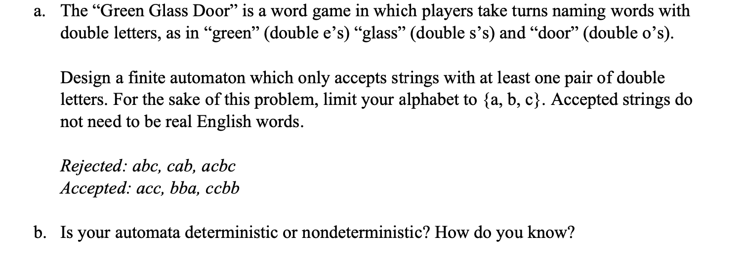 Solved A The Green Glass Door Is A Word Game In Which Chegg Com