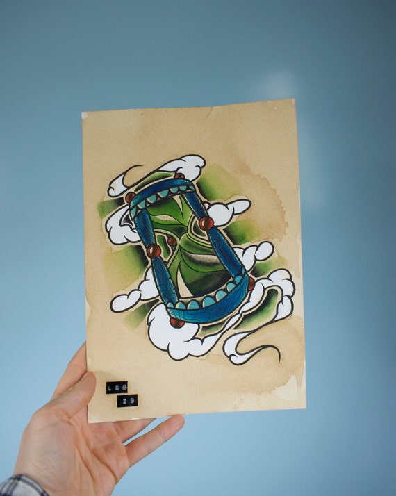 Hourglass Tattoo Flash 10x7 Original Etsy
