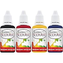 Amazon Com 4 Color Airbrush Temporary Tattoo Ink Kit Black Red Blue Yellow Beauty Personal Care